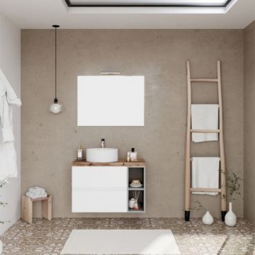 Set Mobilier Fluminia Genova 80cm suspendat cu sertare soft close, alb+lemn - Culoare Alb pal
