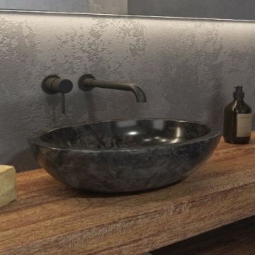 Lavoar pe blat Karag Leyla din piatra naturala, negru - Dimensiune 40cm